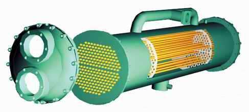 殼管式冷凝器是一種換熱傳導裝置,由殼體、管板、管束、擋板及箱體組成。一組管束或盤管裝在一殼體內構成的冷凝器。傳遞熱量的兩種介質,一種在管內,另一種在管外殼體內,通過管壁進行熱量傳遞,一般為臥式。新型冷凝器冷凝介質的能力,熱交換面積按下式計算:熱交換面積m2=3.1416×管內徑×管長×管子總數。選擇新型冷凝器的大小,應根據單位時間內需冷凝的介質量的大小來定。